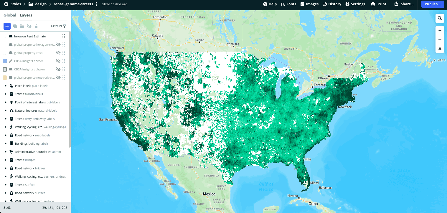 The biggest challenge was transforming thousands of dense property data points into a single, actionable, and scannable map view. I partnered closely with engineering to rapidly test visualization methods in Mapbox Studio—evaluating Dot Density, Heat, Hexagon, and Choropleth styles. Through rigorous testing against user clarity and technical performance, we concluded that Choropleth maps were the most intuitive and familiar format for financial investors, significantly boosting data comprehension.